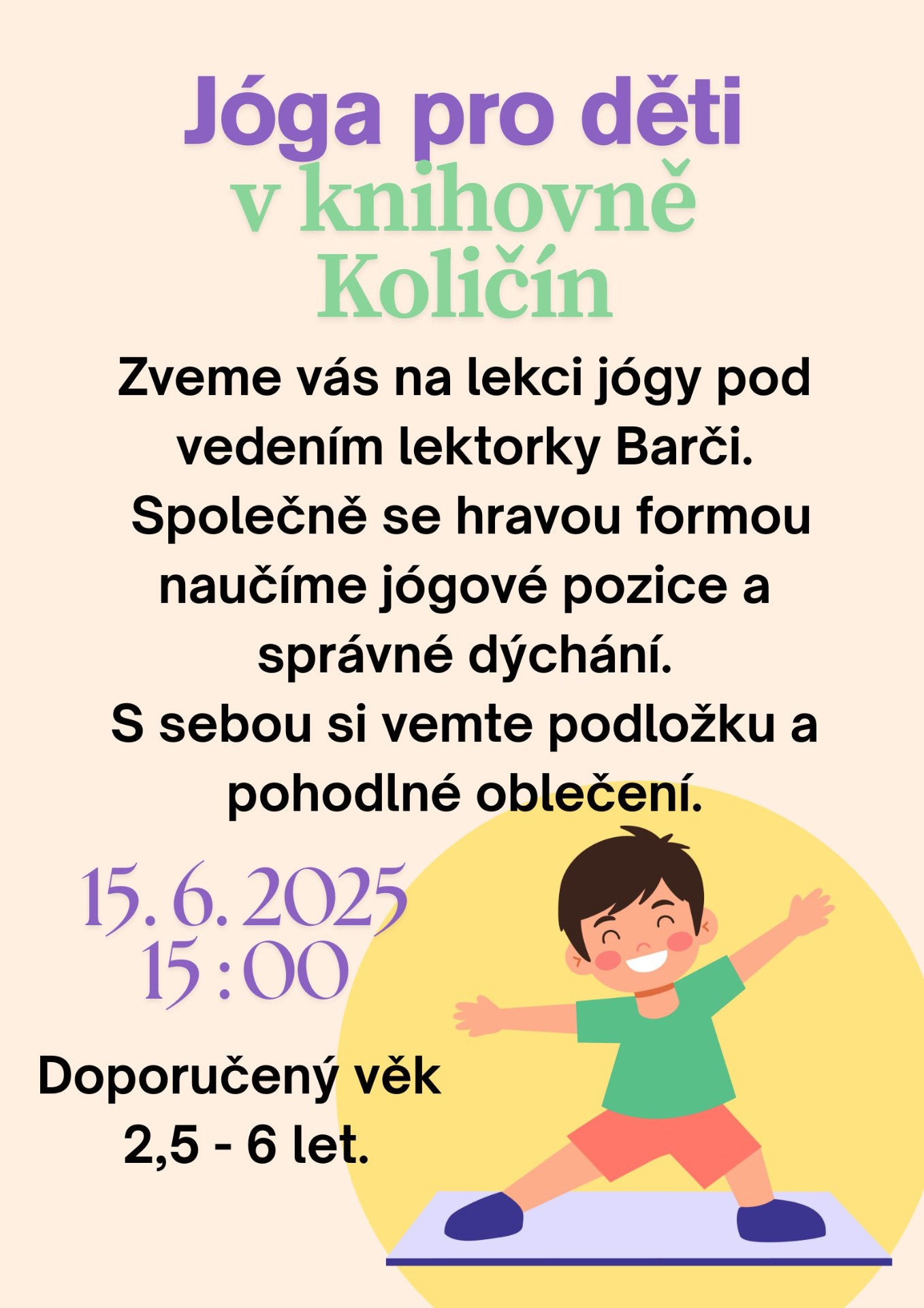 Zveme všechny malé děti ve věku 2,5 až 6 let na veselou a pohybovou lekci jógy pod vedením zkušené lektorky Barči. Hravou formou se společně naučíme základní jógové pozice a správné dýchání.